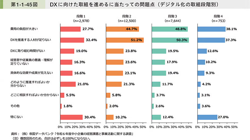 出典:2025年版 中小企業白書(第1-1-45図 DXに向けた取組を進めるに当たっての問題点)